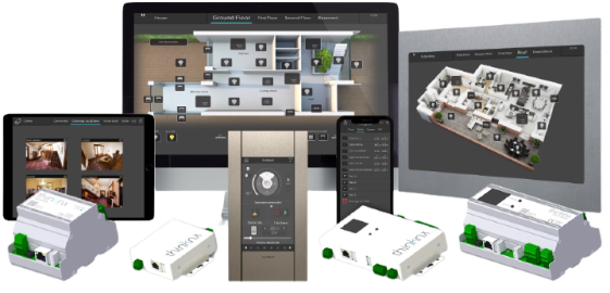 Через веб-интерфейс вы можете управлять выключателями, жалюзи, термостатами и мониторами в системе.