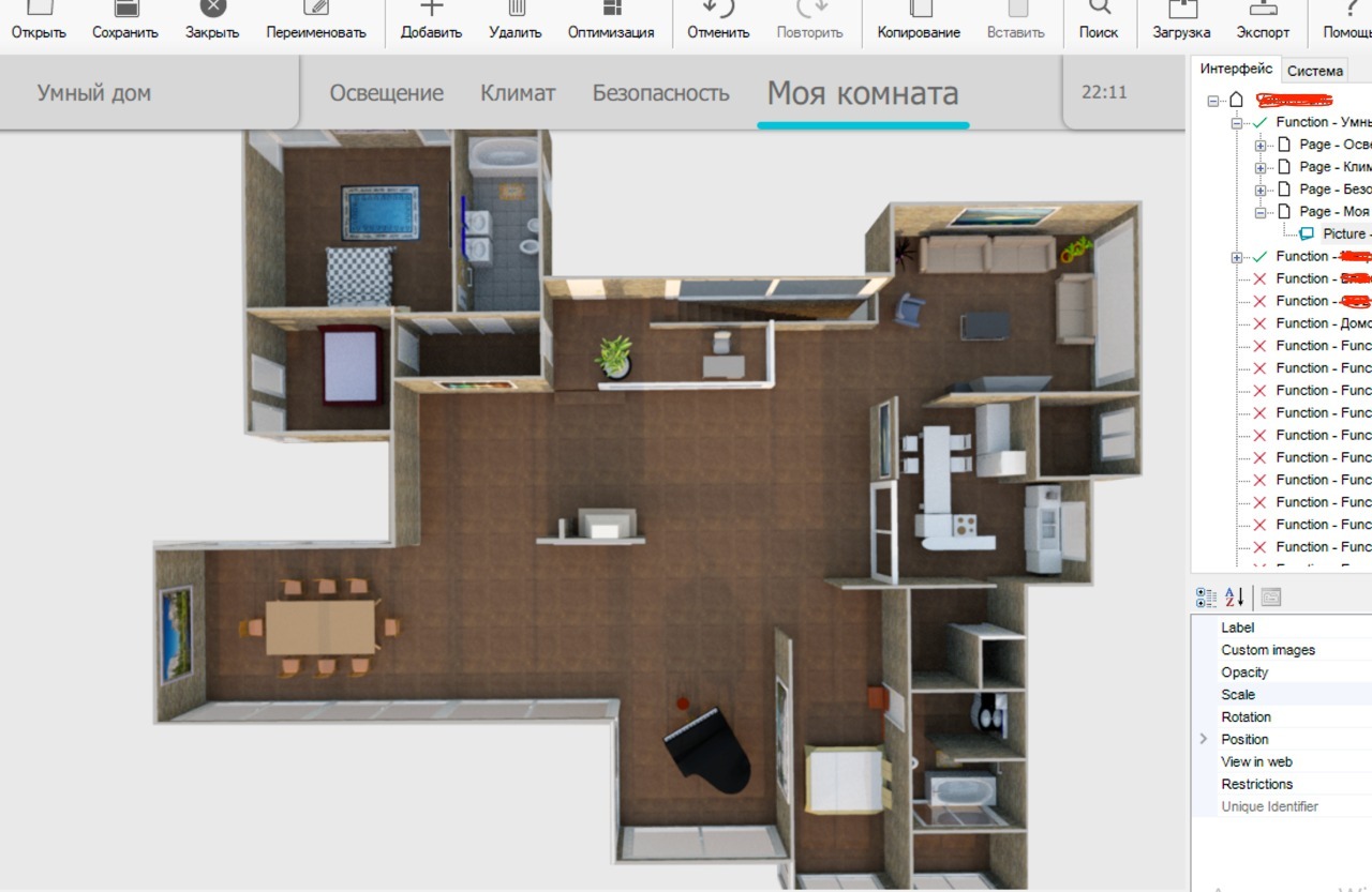 Сцена - это последовательность запрограммированных действий, таких как включение света или открытие штор. Список действий может быть настроен пользователем через функцию записи сцены.